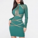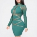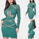 Sexy Contrast Color Long Sleeve Mock Neck Tight Gauze Dress