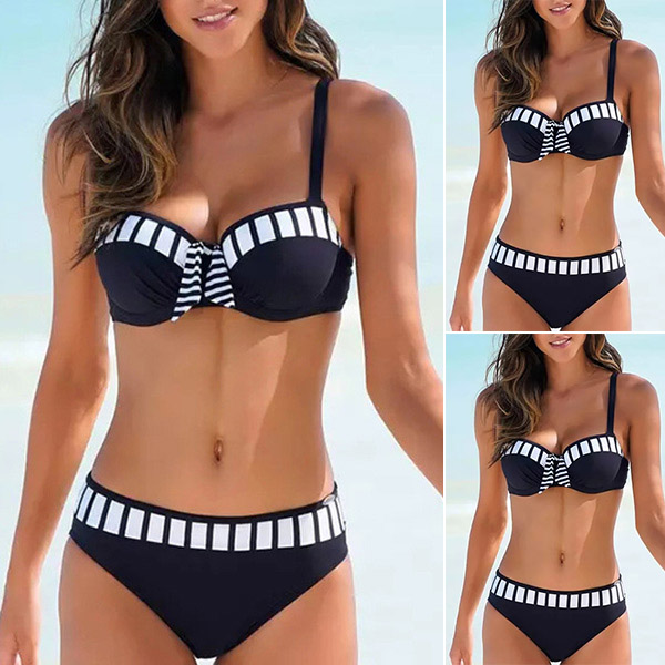 When walking on the beach with this bikini set,you can easily gain more envious eyes. Contrast color design makes it look not so simple and dull. Including a push-up bikini top and a low-waist bikini bottom,this bikini set is a good weapon to portray your seductive curve.