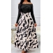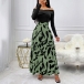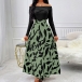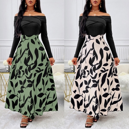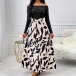 Sexy Contrast Color Off-the-shoulder Long Sleeve Printed Dress