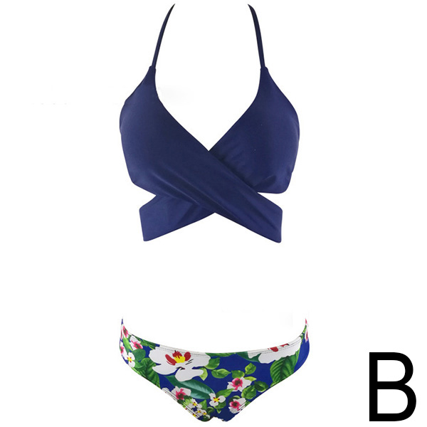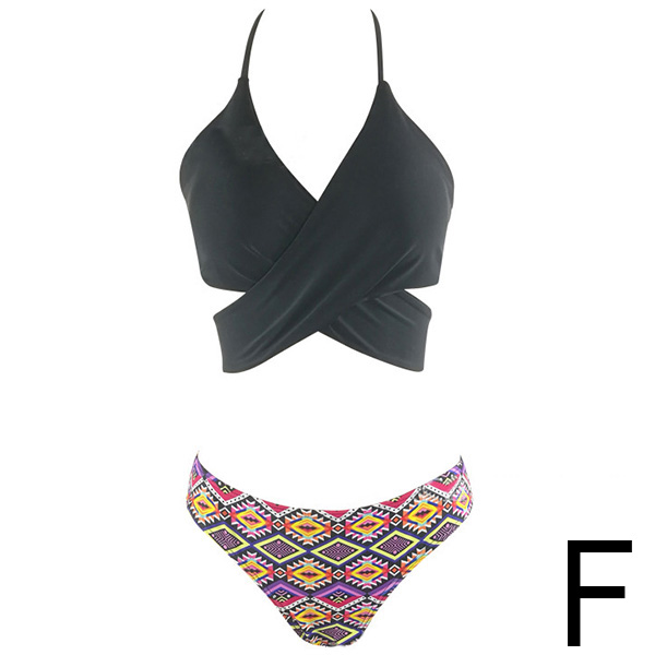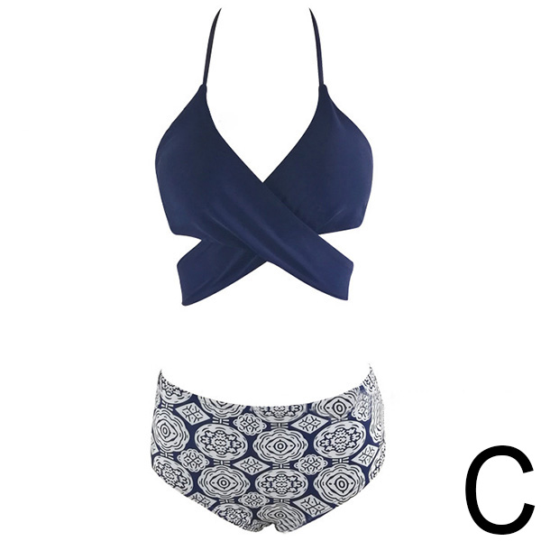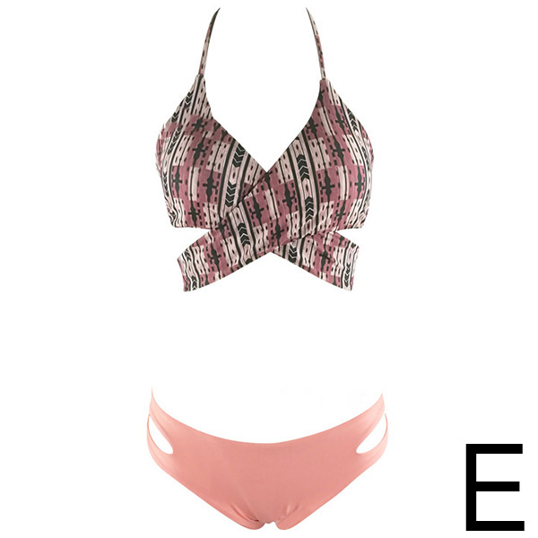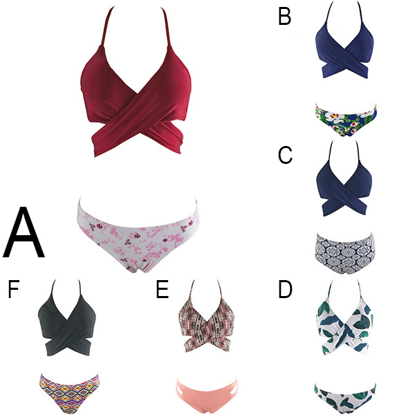 halter bikini top and a low-waist bikini bottom,accompanied with chic printed pattern,this bikini set can bring you