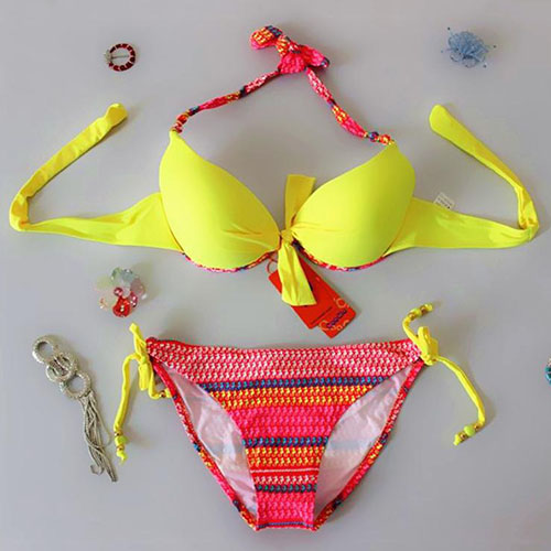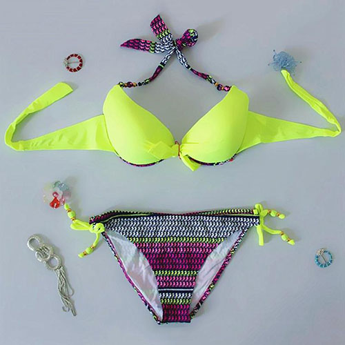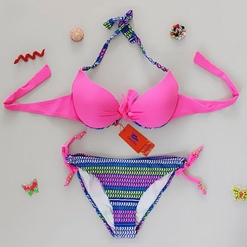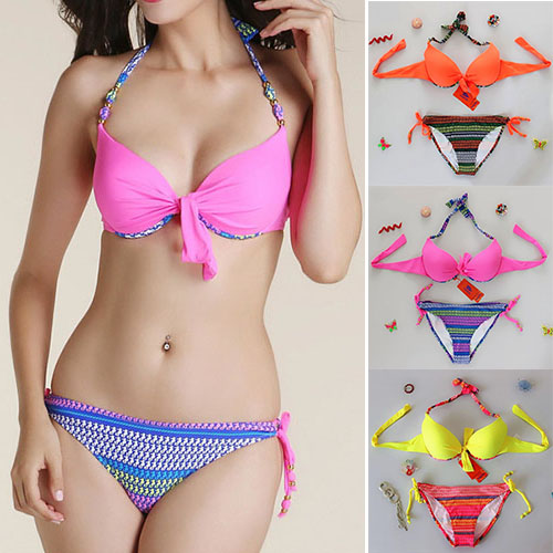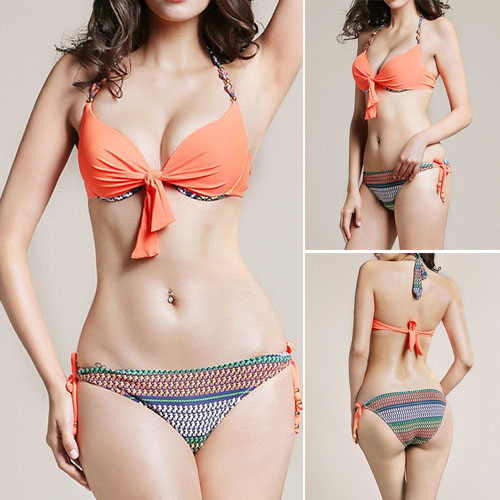 with this bikini set. Contrast color printed style,push-up design can better highlight your charming