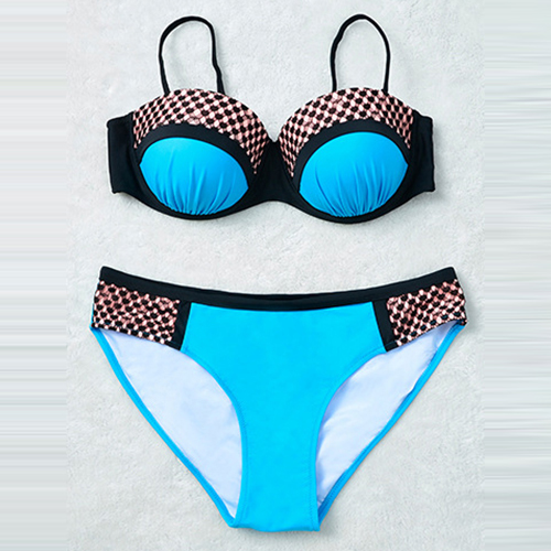 Have fun on the beach or pool with this bikini set. Its contrast color and printed details make it look more eye-catching,whilst