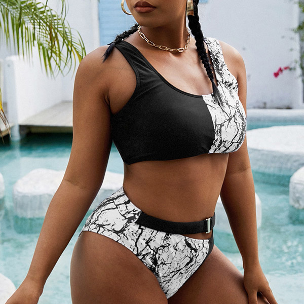 Sexy Contrast Color Printed Two-piece Bikini Set