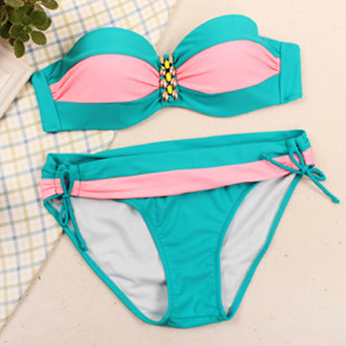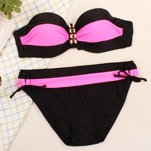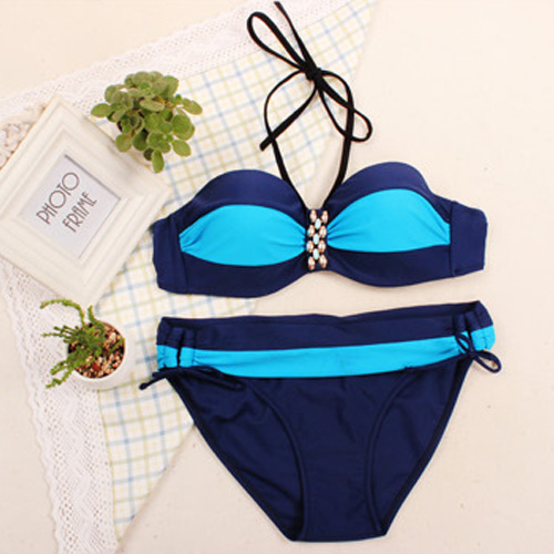 Time to hit the beach or a pool party in sassy style with this bikini set. Contrast color design