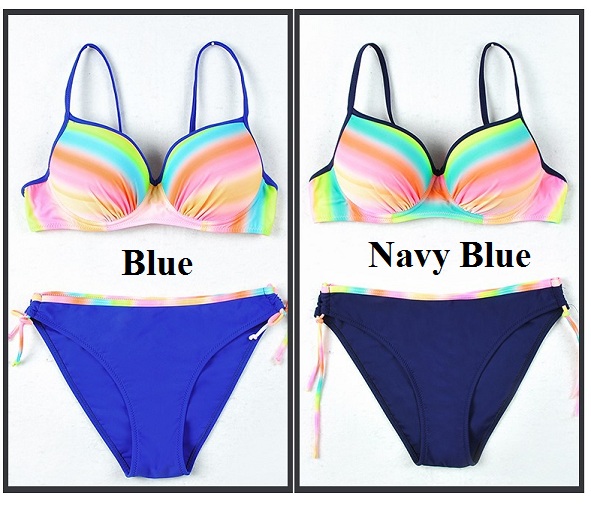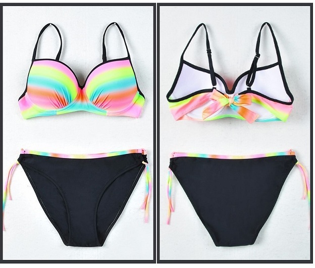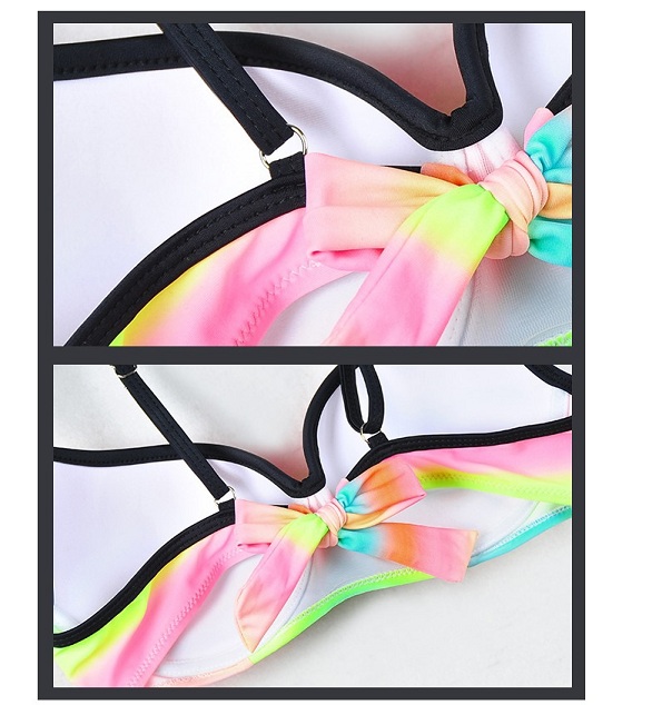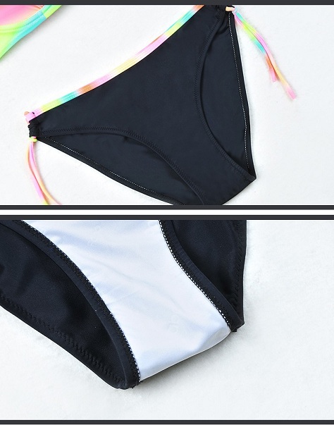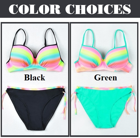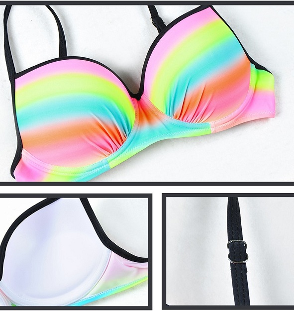 Easy to show off your seductive curve and sun-soaked skin through this bikini set! Contrast color style,with rainbow