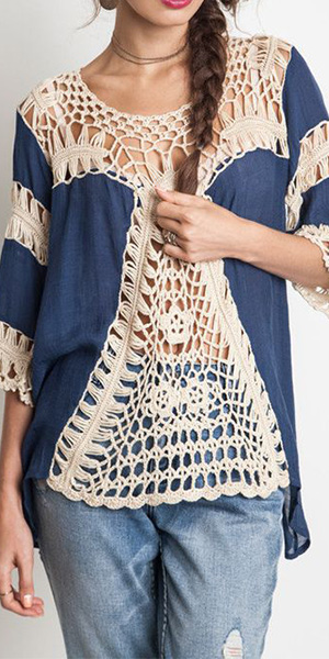 If you have a seaside plan in weekend, then you can look at this piece. This is a crochet smock