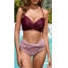 Sexy Contrast Color Ruched Bikini Set Consist of Halter Swimming Top and Ruched High-rise Swimming Bottom