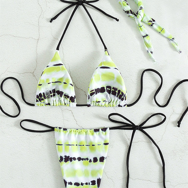 Sexy Contrast Color Self-tie Halter Bikini Set