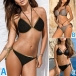 Sexy Contrast Color Self-tie Halter Bikini Set