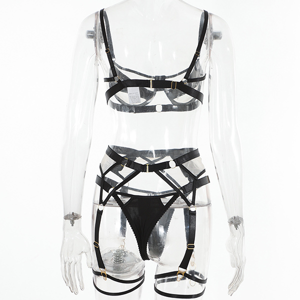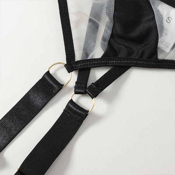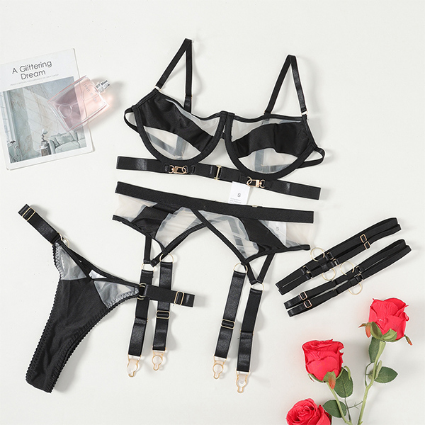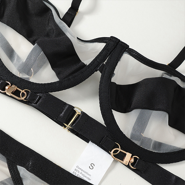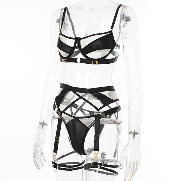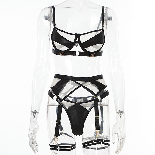 Sexy Contrast Color Semi-through Three-piece Lingerie Set