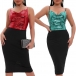Sexy Contrast Color Sequined Spliced Draped Bodycon Slip Dress