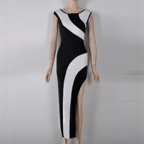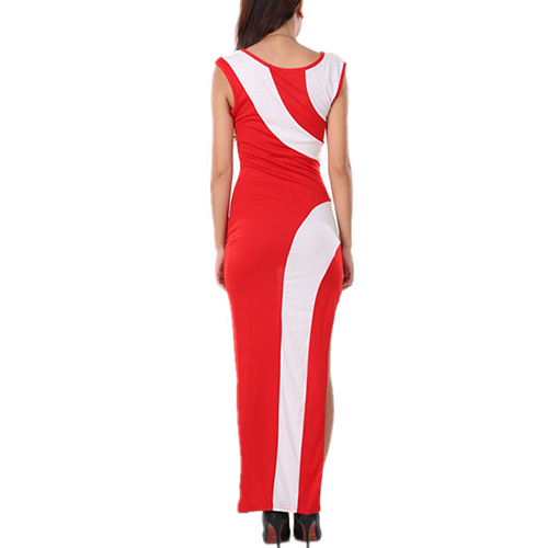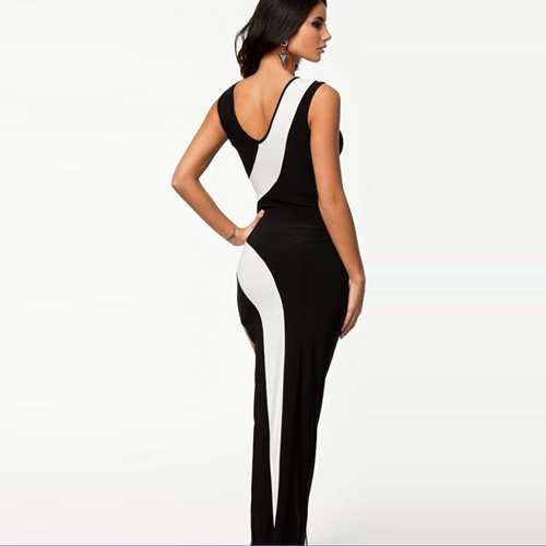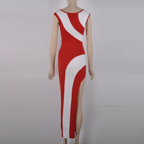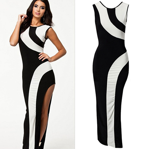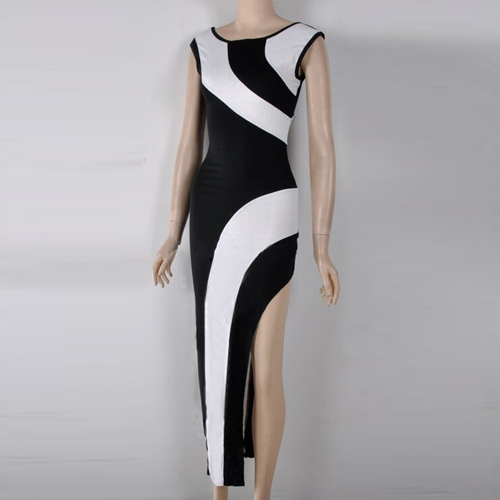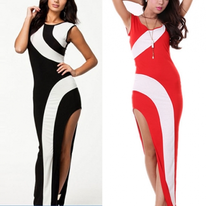 This dress features contrast color design,stylish and feminine. Slit hemline design can perfect show
