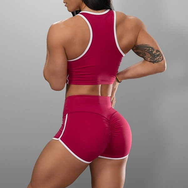 Sexy Contrast Color Sports Top + Shorts Two-piece Set