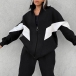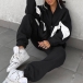 Get ready to turn heads in this Sporty Two-piece Set. It consists of a Sweat Jacket and Sweatpants. This trendy set features a stylish contrast color design that adds a pop of excitement to your athleisure look. The sweat jacket is perfect for layering with its sporty vibe, while the sweatpants offer a comfortable and relaxed fit for all-day wear. Perfect for daily wear.