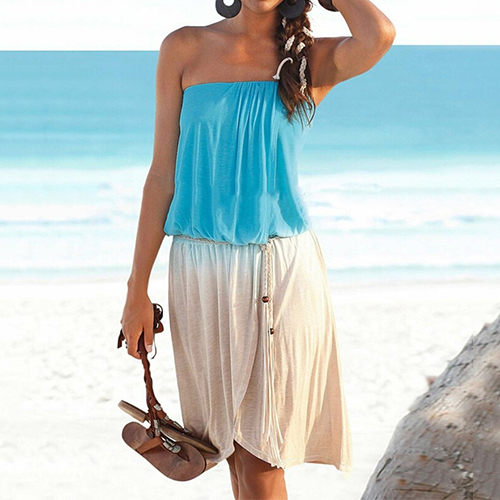 Sexy Contrast Color Strapless Backless Midi Dress