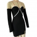 Sexy Contrast Color Strapless Long Sleeve Bodycon Party Dress