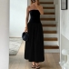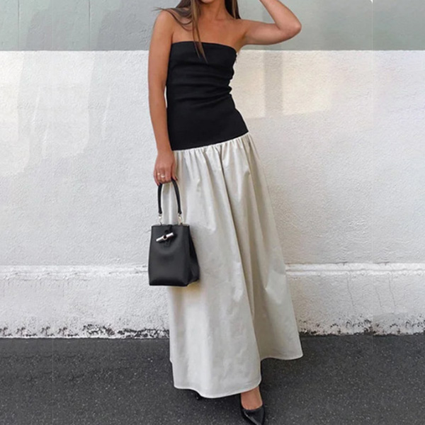 Sexy Contrast Color Strapless Maxi Dress