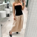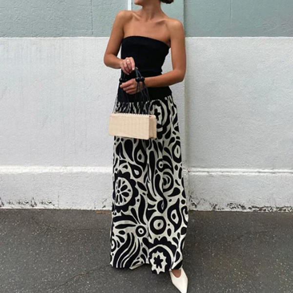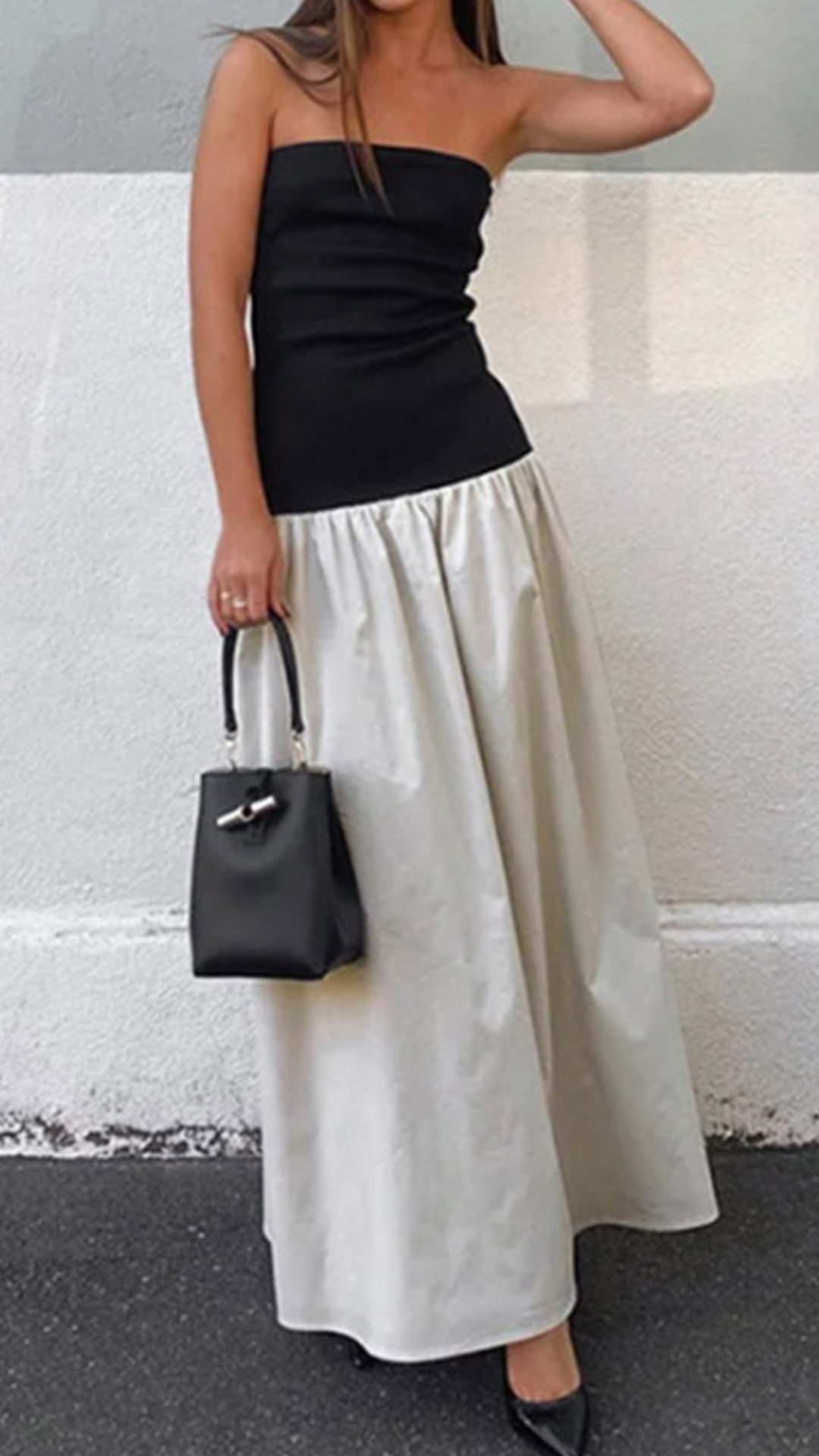 This captivating maxi dress features strapless silhouette with a striking contrast color design, creating a head-turning, fashion-forward garment. Hope you like it.