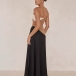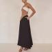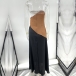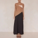 Look at this maxi dress! The contrast color detailing adds a bold and eye-catching element to the dress, while the strapless design creates a sleek and elegant look. Perfect for this summer vacation.