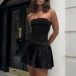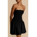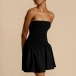 This mini dress combines a sexy strapless silhouette with a striking contrast color design, creating a head-turning, fashion-forward garment that exudes confidence and sophistication.