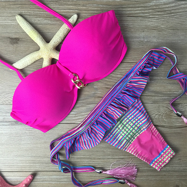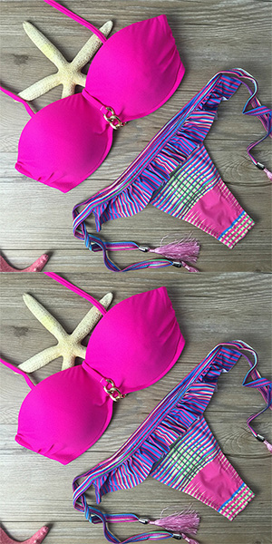 Wanna look sexy and charming on the beach? Then we suggest you choosing an eye-catching bikini set. How about this set?