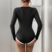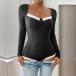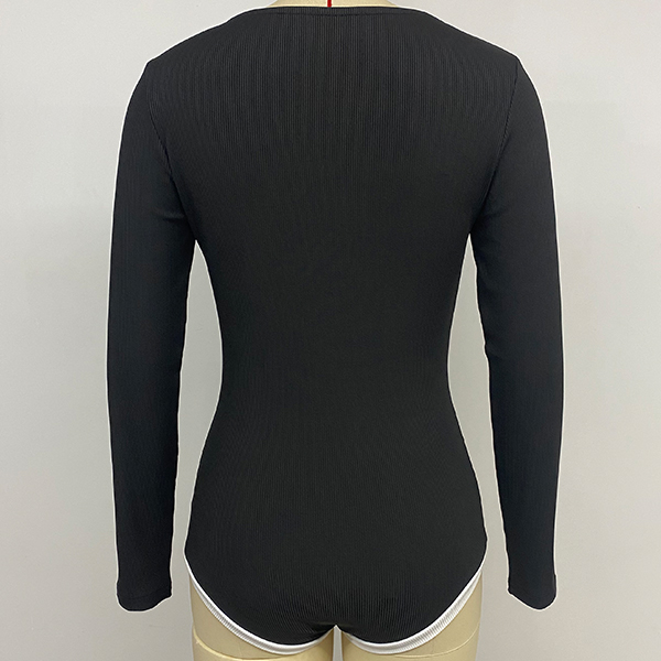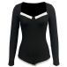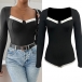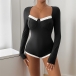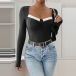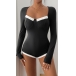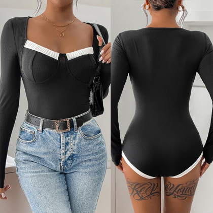 Sexy Contrast Color Sweetheart Neckline Long Sleeve Ribbed Bodysuit
