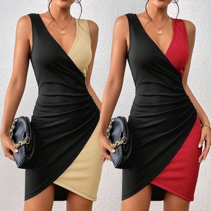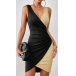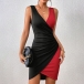 Sexy Contrast Color V-neck Irregular Hemline Bodycon Dress