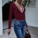 Sexy Contrast Color V-neck Long Sleeve Bodysuit