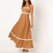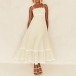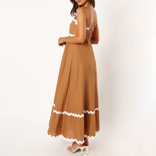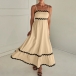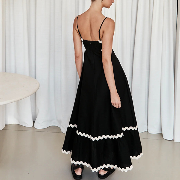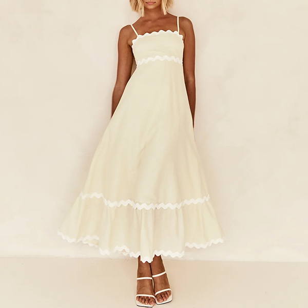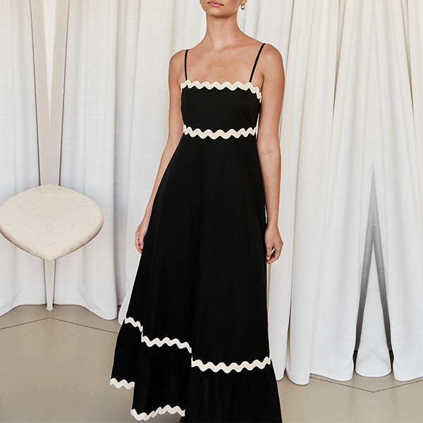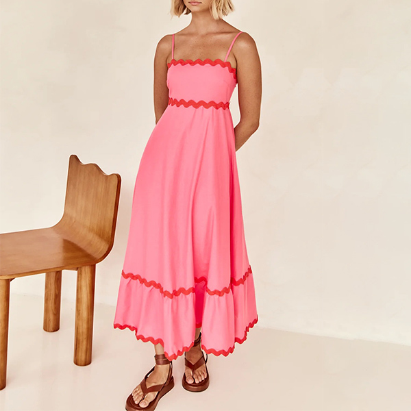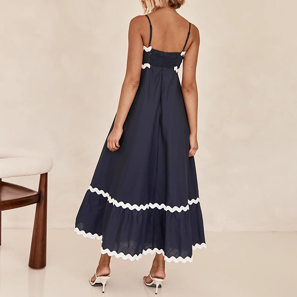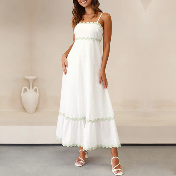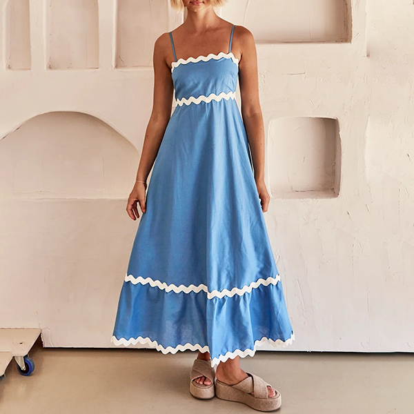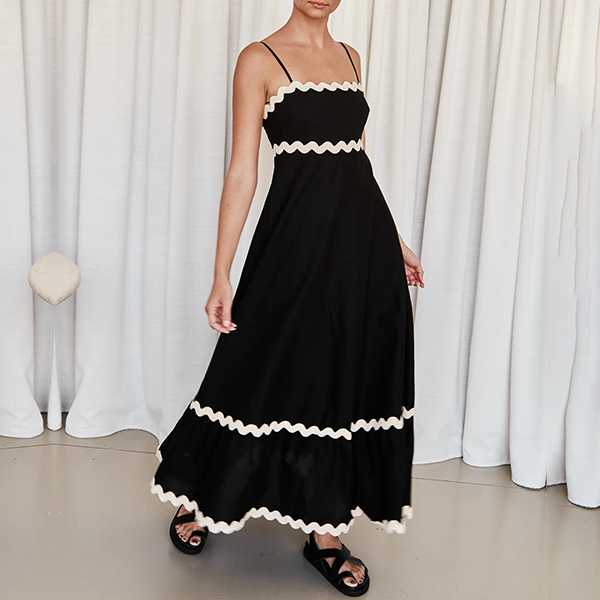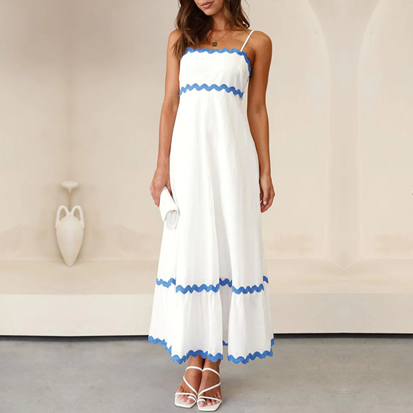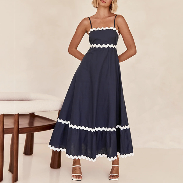 Sexy Contrast Color Wave Printed Straight-cut Neckline Midi Slip Dress