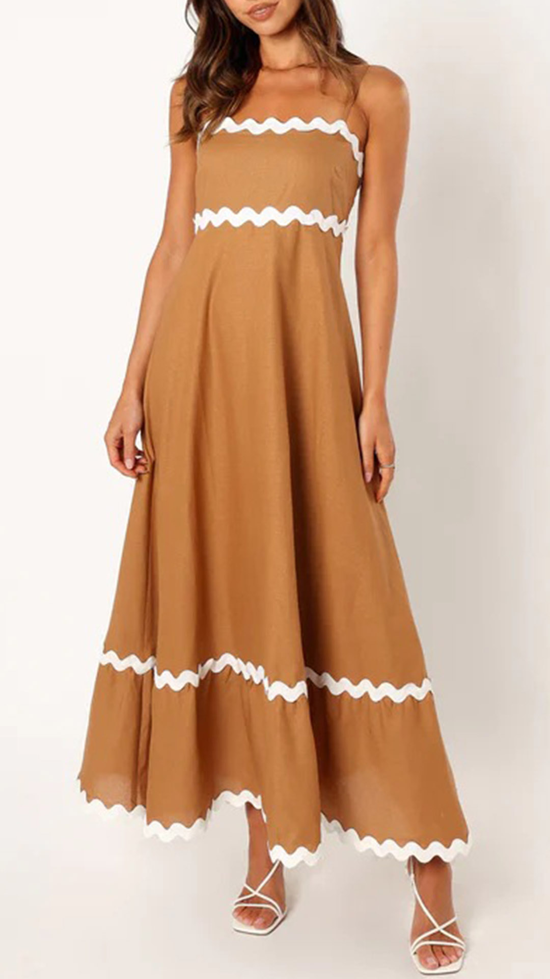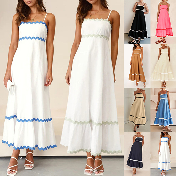 Look at this dress! Featuring a straight-cut neckline and midi length, this dress exudes a sleek and sophisticated vibe. The contrast color wave print adds a bold and eye-catching element, perfect for creating a sexy and fashionable look. Wanna have one?