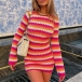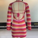 Sexy Contrast Color Wave Stripe Printed Long Sleeve Backless Bodycon Knitted Dress