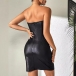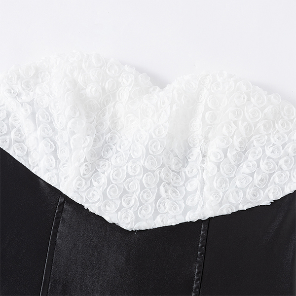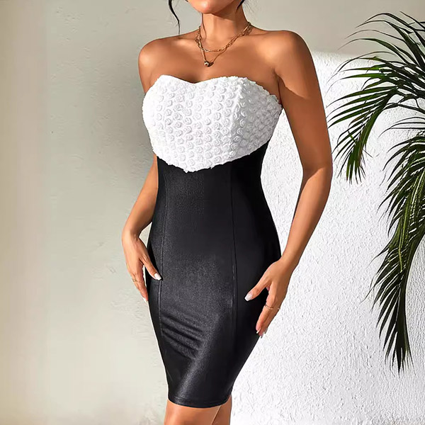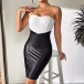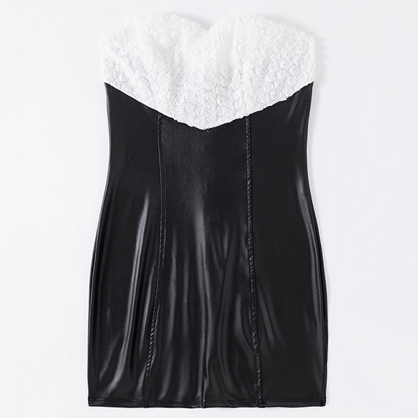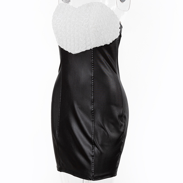 Sexy Contrat Color 3D Floral Spliced Artificial Leather PU Strapless Bodycon Dress