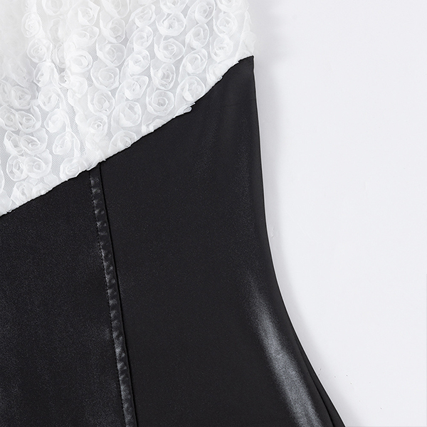 Look at this sexy dress! It features a captivating white 3D floral design and a black luxurious faux leather construction. This showstopping piece is the perfect blend of modern edge and romantic femininity. Hope you like it.