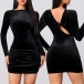 Sexy Crew Neck Backless Long Sleeve Bodycon Dress