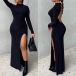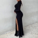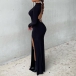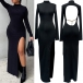 Sexy Crew Neck Backless Side Slit Maxi Dress