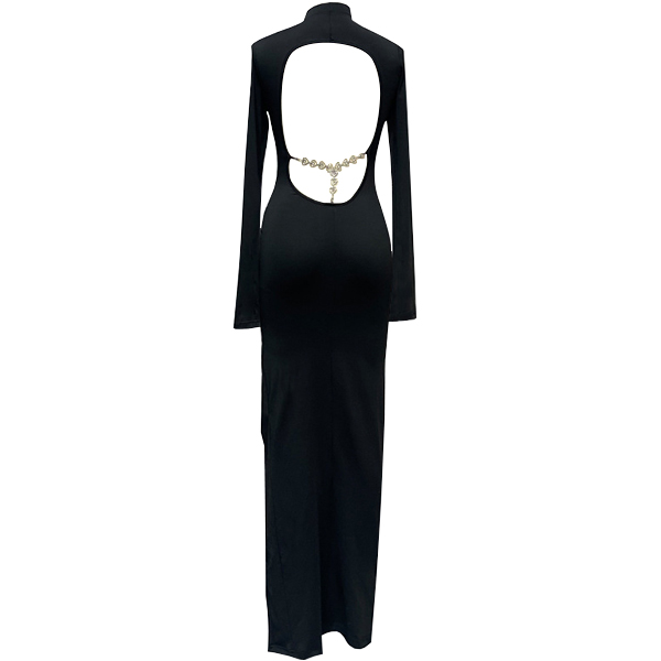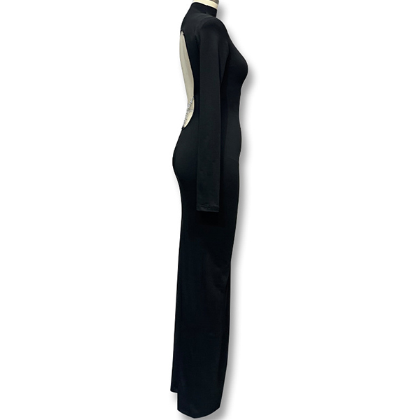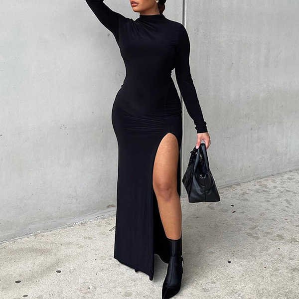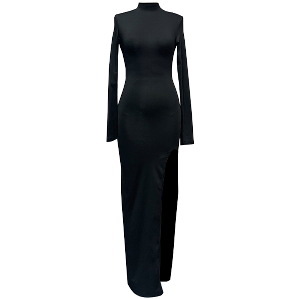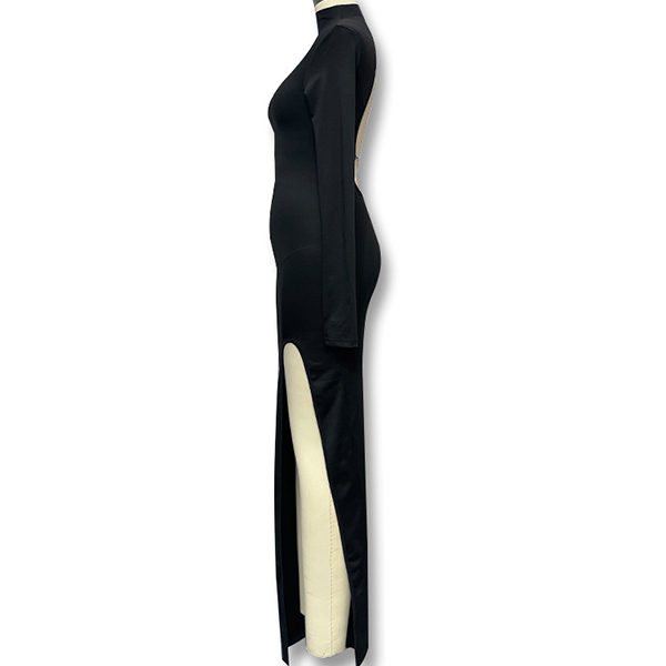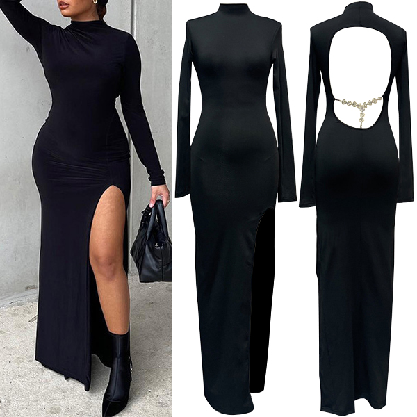 This stunning dress features a chic crew neck and a daring backless design that will turn heads wherever you go. The side slit adds a touch of allure and movement to the floor-length silhouette, making it perfect for a special occasion or evening event. Pair this dress with heels and statement jewelry for a glamorous and sexy ensemble that will make you feel confident and empowered.