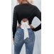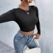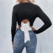 Sexy Crew Neck Long Sleeve Backless Bowknot Crop Top