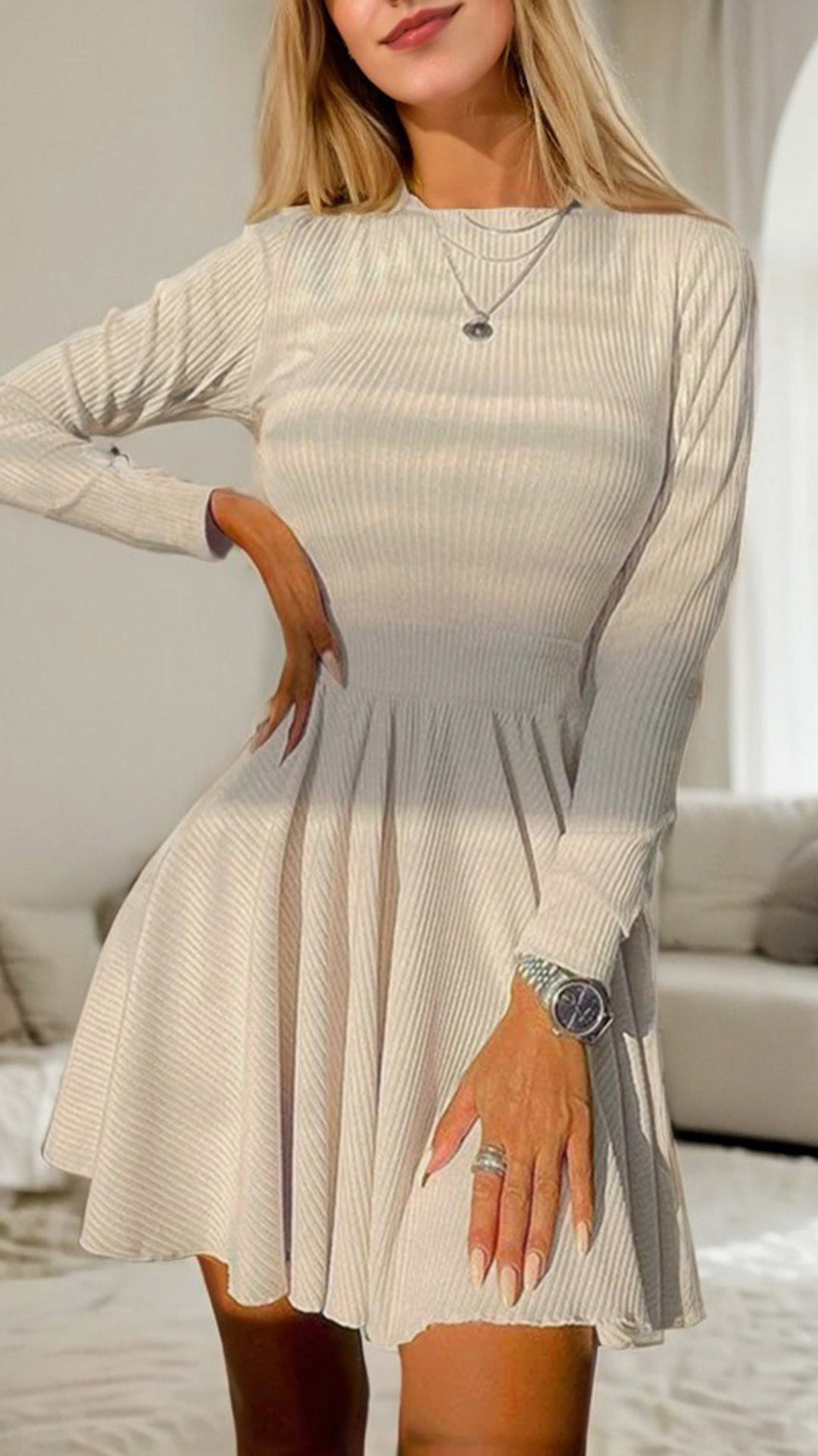 How about this mini dress? The long sleeves offer a hint of modesty and balance out the mini length of the dress, creating a stylish and balanced silhouette. The backless design adds a flirty and playful touch, allowing you to show off some skin in a tasteful and elegant way. Wanna have one?