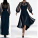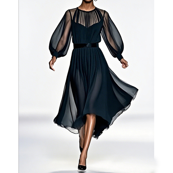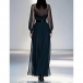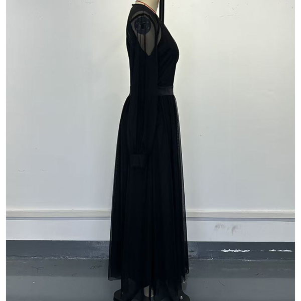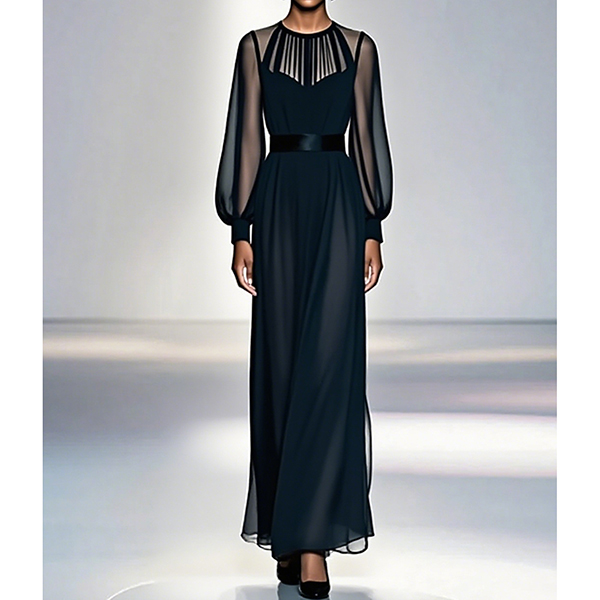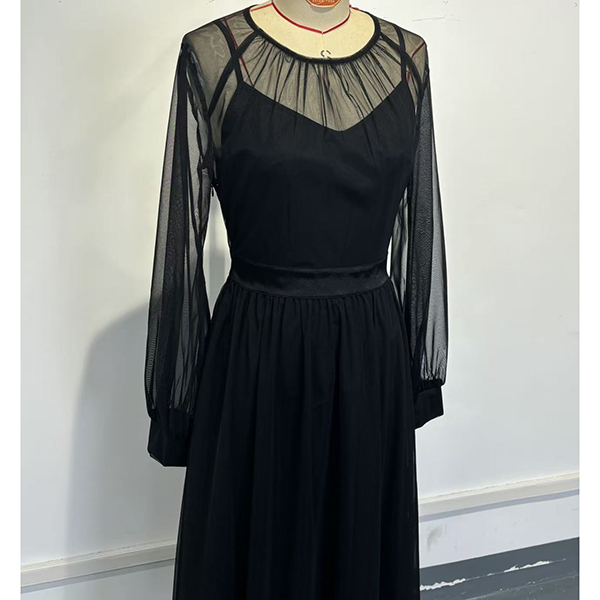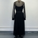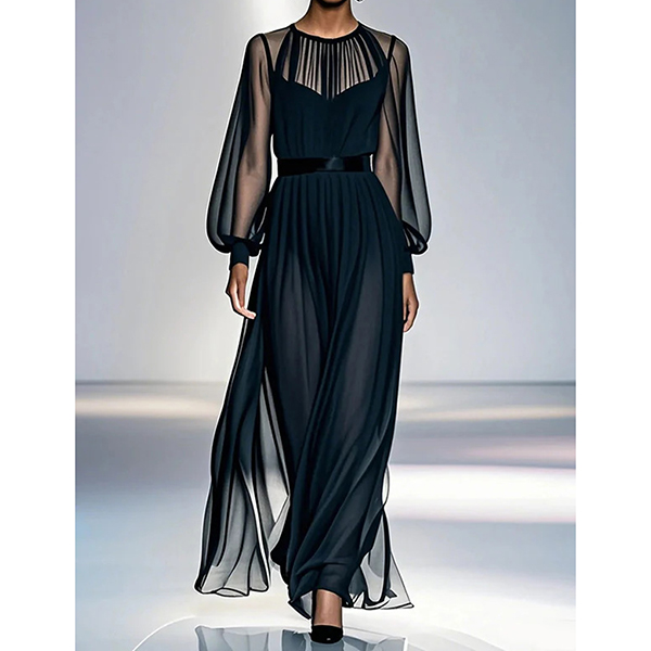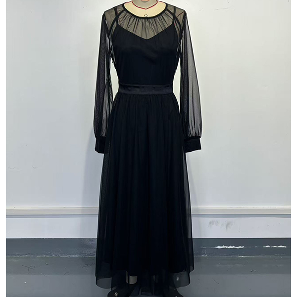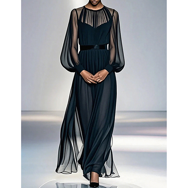 Sexy Crew Neck Long Sleeve Gauze Maxi Dress with Inner Slip Dress