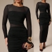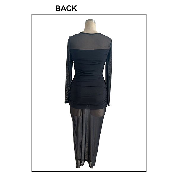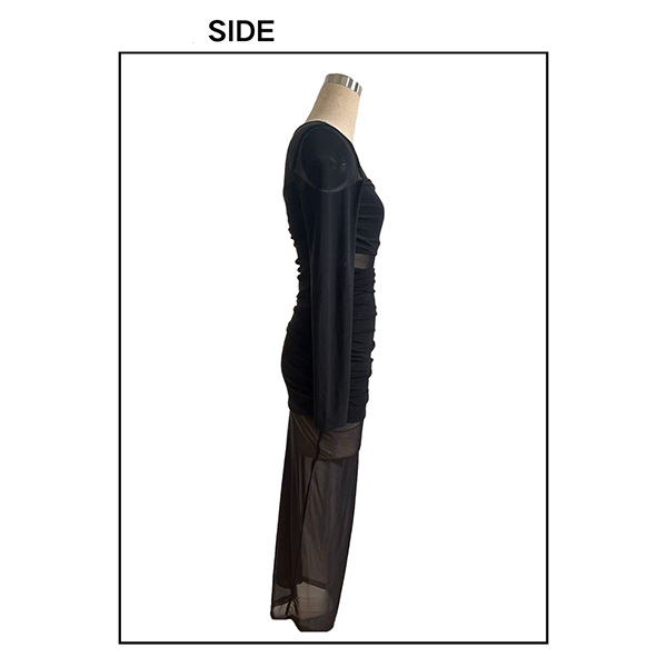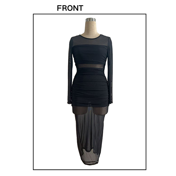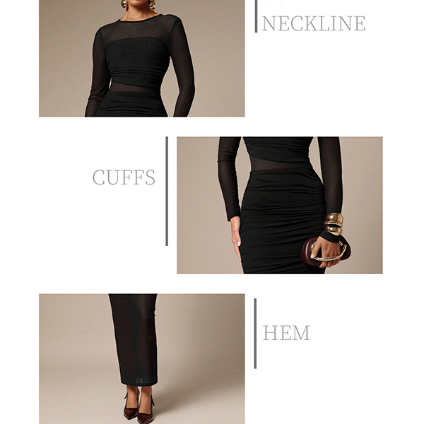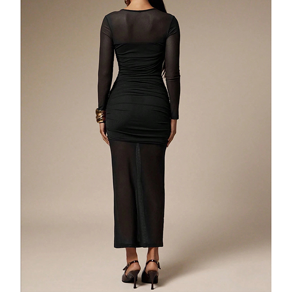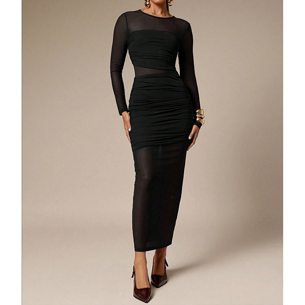 Sexy Crew Neck Long Sleeve Ruched Semi-through Bodycon Dress