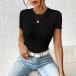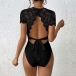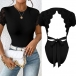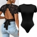 This bodysuit features a classic crew neckline with short sleeves and a lace spliced backless design that adds a touch of elegance and sexiness to your look. The backless detail is perfect for showcasing your back and adding a hint of drama, while the delicate lace fabric creates a romantic and sophisticated vibe. Pair it with high-waisted trousers or a skirt for a chic and polished ensemble~