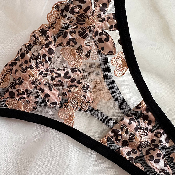 Sexy Criss-cross Floral Embroidered Two-piece Lingerie Set