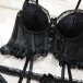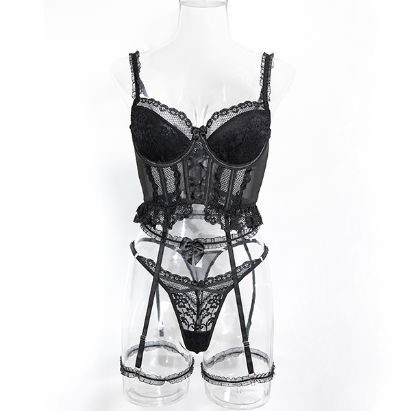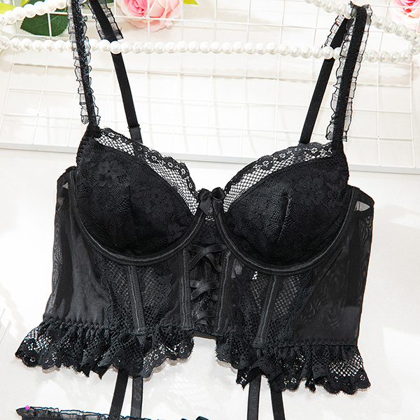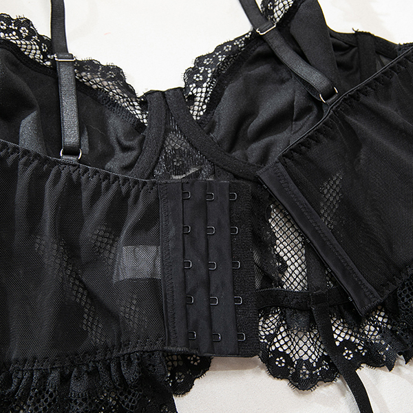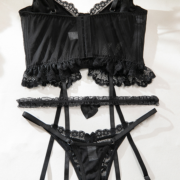 Sexy Criss-cross Ruffle Three-piece Lace Lingerie Set