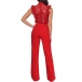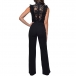 This captivating jumpsuit combines the allure of crochet lace with the sleek and streamlined silhouette of a straight-cut design, creating a striking and sensual look. It can be paired with high heels, strappy sandals, to accentuate the streamlined silhouette.