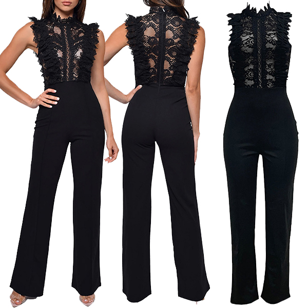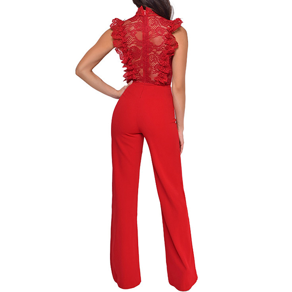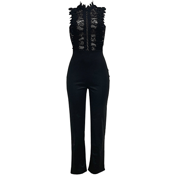 Sexy Crochet Lace Spliced Straight-cut Jumpsuit
