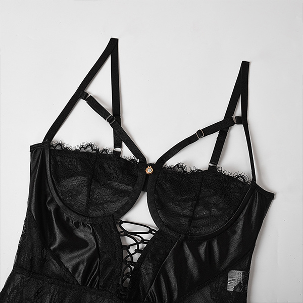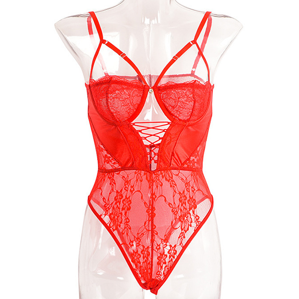 Sexy Cross-criss Cutout Backless Lace Lingerie Bodysuit