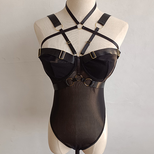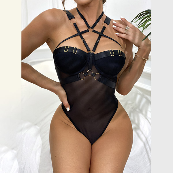 Sexy Cross-criss Cutout Mesh Lingerie Bodysuit
