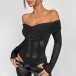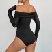 Sexy Cross Strapless Long Sleeve Semi-through Corset Bodysuit