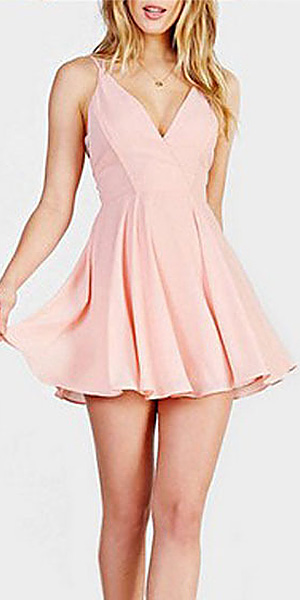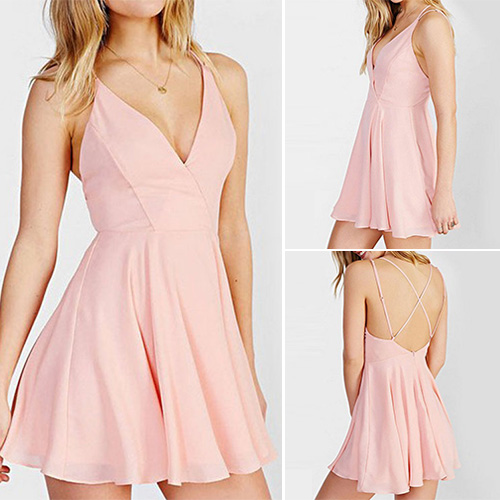 Solid color,with backless and deep v-neck design. For weekend cocktails to a flirty