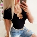 Sexy Crossover Chain V-neck Short Sleeve Solid Color Slim Fit T-shirt